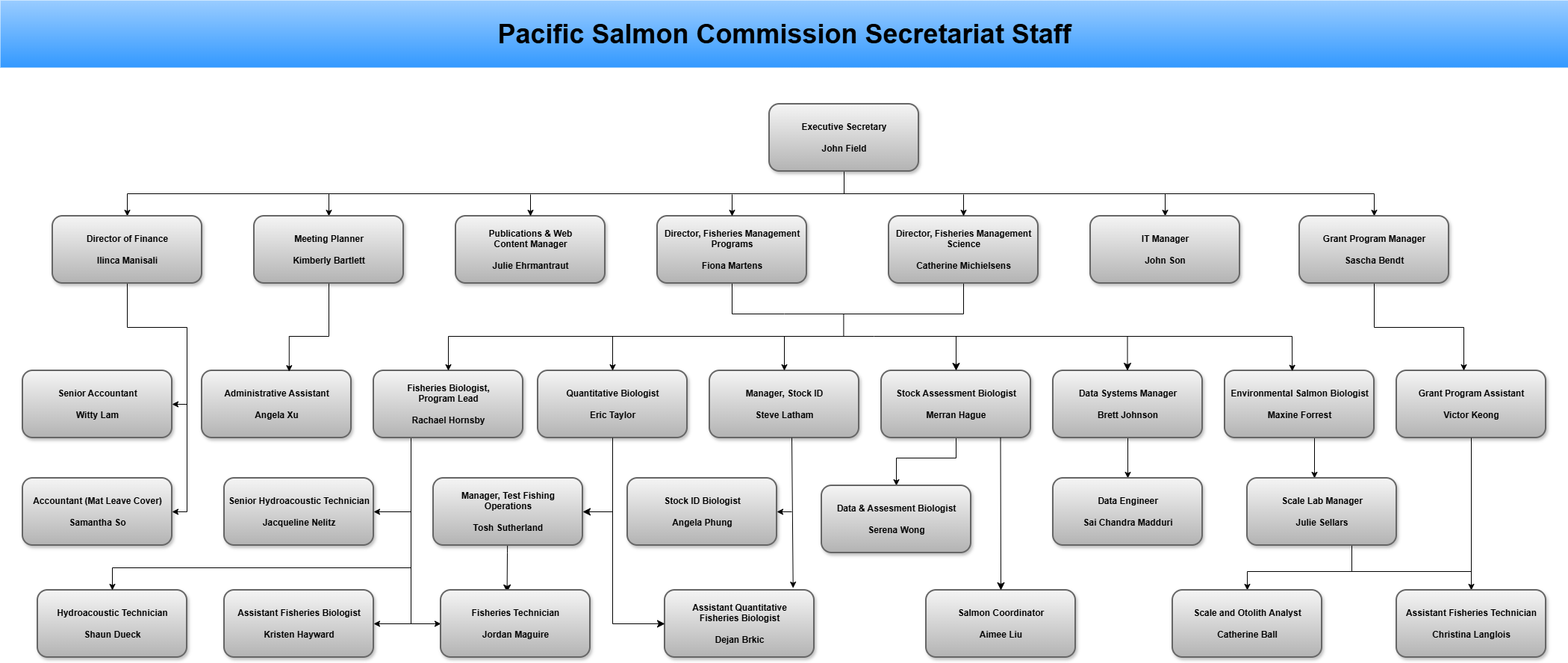 The staff directory of the Pacific Salmon Commission’s Secretariat office.